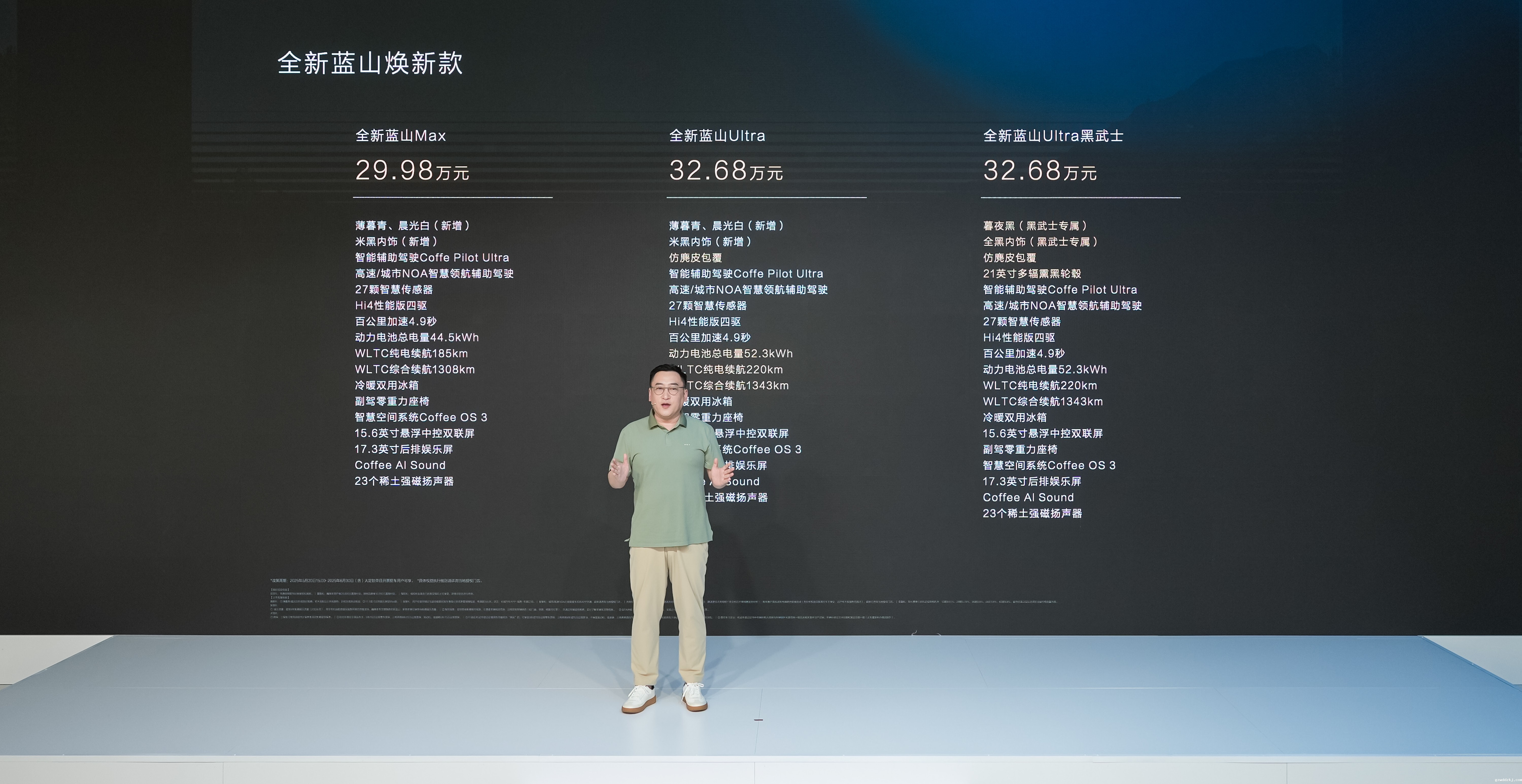 全新蓝山焕新款正式发布,全新蓝山焕新款MAX版、全新蓝山焕新款Ultra版、全新蓝山焕新款Ultra黑武士版售价分别为29.98万元、32.68万元、32.68万元。购车用户可享至高价值82,599元的限时焕新权益,魏牌老用户置换全新蓝山焕新款,可获翻倍补贴及终身免费流量。