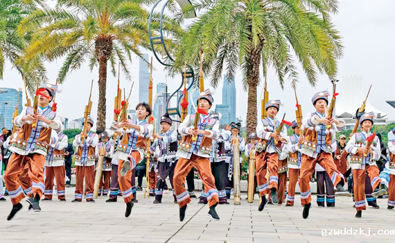 广西“三月三”活动中的苗族芦笙展示 粟 俊 摄