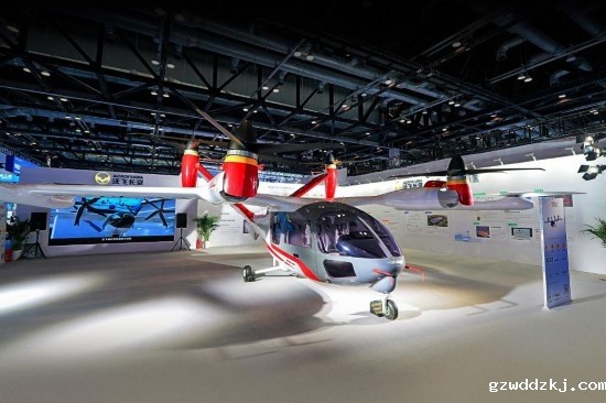 在第三届民航科教创新成果展的沃飞长空公司展区,正在展出的AE200 eVTOL飞行器。(沃飞长空供图)