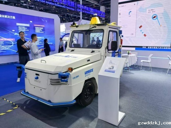 在第三届民航科教创新成果展的驭势科技展区展示的T30A无人驾驶牵引车。新华社记者 叶昊鸣 摄
